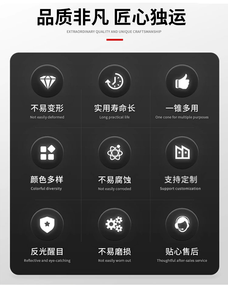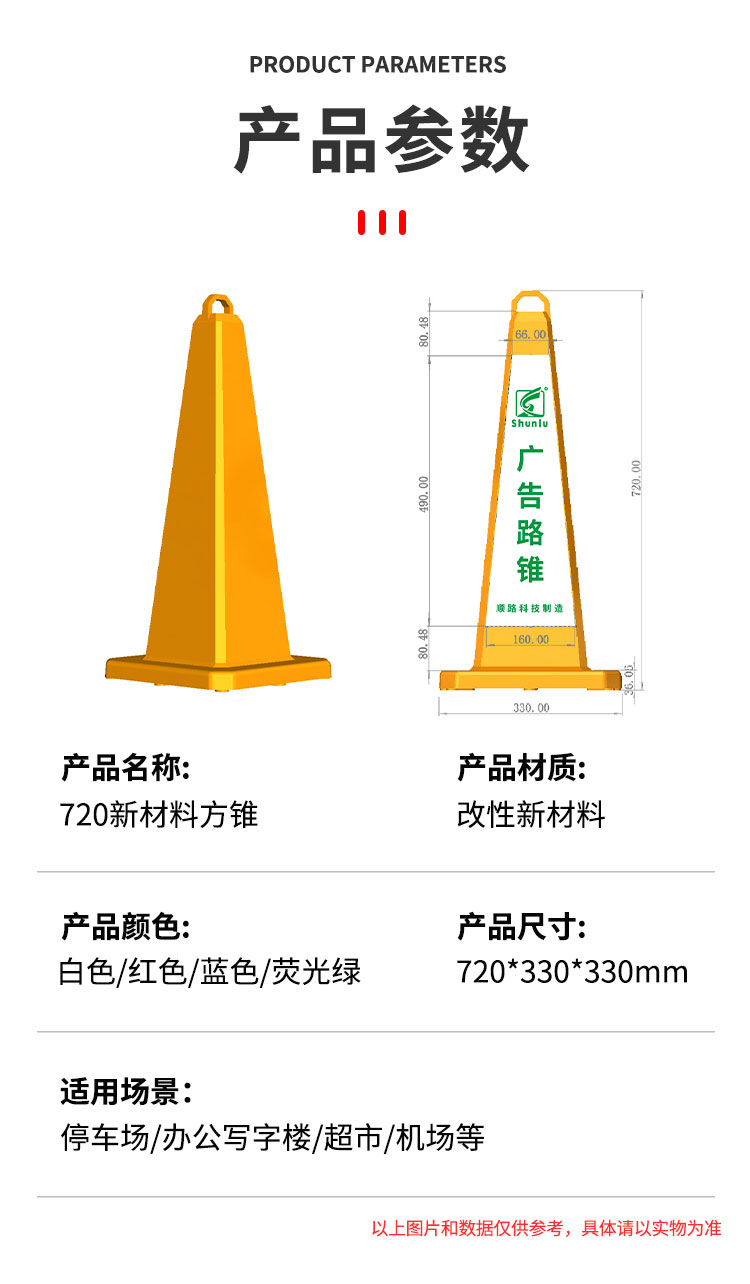 720新材料方锥,锥身底座一体化,颜色多样,可丝印可贴膜,软硬适中。